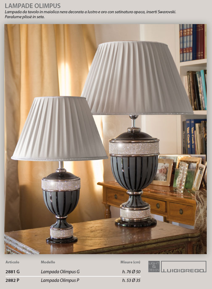 | Since 1981 the Luigi Grego's Company is synonymous of quality and passion for the reserch of new forms. All the stages of manufacturing are performed inside our factory to guarantee the highest level of "Made in Italy" quality. The use of fine and exclusive materials, such as decorations of majolica, third fire, of platinum and 18 karat of pure gold and appliques of original Swarovski cristals, ensure the highest refinement and preciousness of our creations. Our production is appreciated both in Italy and in the foreign Countries, in different bussiness sector, such as gift items, furnitures, lighting equipment and hotel supplies. Luigi Grego also produces costumized items and upon cusotmer's request. All lamps are wired in compliance with regulations and are certified with CE mark. |